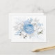 Elegantes rosas azules y blancas con vegetación plateada y libélulas