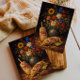 A bold, painterly still life that blends expressive florals with the vibrant textures of classic street elote. This artwork features a richly detailed bouquet set against a deep, moody background, paired with two ears of Mexican street corn topped with creamy, crumbly, and spiced elements, finished with fresh lime on a rustic tabletop.