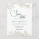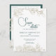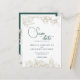 Elegante rosa botánico y floral de oro y diseño follaje Boda Guardar la postal de invitación de fecha con un tipo de letra de guión y un tema de color verde esmeralda. Personalizar con los detalles de su día especial.