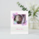 Postal con foto recortada de color rosa y morado, con las palabras: Gracias. Sólo tienes que subir tu imagen y podrás cambiar el texto y añadir tus propias palabras.