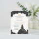 Esta elegante y glamorosa invitación para el cumpleaños de Quinceañera cuenta con una hermosa princesa con el pelo oscuro en un vestido de bola negra. El texto combina el guión manuscrito y las fuentes sans serif modernas para un aspecto elegante y sofisticado. Los arreglos florales y los confetti dorados crean la combinación perfecta entre rústico y moda. Gráficos de www.etsy.com/uk/shop/SunflowerDayLove