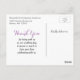 Un hermoso ilustracion de temática botánica con una corona circular de flores acuarelas de bonito en rosa y púrpura con hojas verdes en el medio. El diseño floral se compone de peonías rosadas y anémonas púrpura. El fondo es una suave textura de color verde menta. Gracias escrito al frente con su nombre personalizado y fecha de boda. En la parte de atrás hay un mensaje personal y de agradecimiento al personalizable.