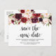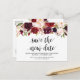 Este es el moderno y rústico diseño de florals de Borgoña temática, con letra negra, invitación de fiesta de boda Postales reprogramadas (pospuestas/pospuestas) (ahorre la nueva fecha) . Es la manera perfecta y elegante de hacer la invitación reprogramada a sus amigos y familiares.