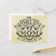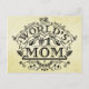 Esta elegante postal del Día de la Madre dice "La primera mamá del mundo" en un diseño muy elegante, de aspecto vintage -aunque original- que combina texto retro negro con abundantes floraciones ornamentales, flechas, un cartel e iconos apuntando a la mano. Si tu madre es la mejor del mundo, muéstralo con este elaborado, intrincado y muy bonito diseño de postales, que recuerda a los anuncios victorianos o eduardianos. El fondo está hecho para que parezca descolorido y envejecido con un ligero efecto de grunge. Personalizar que agregue un mensaje a la parte posterior.