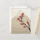 Postal Florecimiento de cerezos rojos Monte Fuji Ilustrac