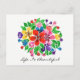 Flores acuarelas con palabras positivas "La vida es bella". Diseño floral colorido y espléndido creado para añadir colores a los momentos. Personalizar con los colores de fondo, palabras o simplemente disfruta como está.