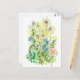 Una postal con un ramo de flores silvestres primaverales dibujadas con tinta y acuarela que incluye nigella, viola y primrose.