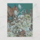 Postal Flores antiguas rusticas pintadas sobre Verde azul
