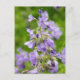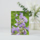 Postal Flores azules delgadas en un campo verde en primav