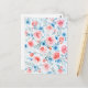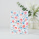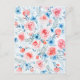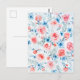 Postcard con delicadas rosas rosas rosas y flores azules patrón acuarela.