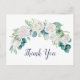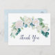 Esta clásica flor blanca gracias postal es perfecta para una boda de primavera. El elegante diseño floral presenta rosales blandas de marfil y blanco, peonías y crisantemo con toques de flores de acuarela azul perwinkle y follaje verde. Personaliza la parte posterior de la tarjeta postal con tus nombres, tu dirección de retorno y un mensaje de agradecimiento. Como alternativa, deje en blanco la sección de plantillas de mensajes de agradecimiento para escribir a mano una nota personalizada cuidadosa en cada tarjeta después de su llegada. Estas tarjetas se pueden usar para un boda, una ducha de novia o cualquier evento especial.
