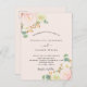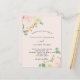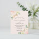 Un fondo dorado rosa claro y ventilado. Decoradas con flores de color acuático, rosas de flores rosadas, orquídeas blancas y gerbera amarilla, vegetación eucaliptos y brotes de oro falsos. Personalice y agregue sus nombres y detalles del boda. Letras de color negro. Parte posterior: fondo dorado rosa, diseño postal. Sugerencia: Si no desea que se vea como una postal, haga clic en personalizar, vaya a la parte posterior y quite el separador y el sello postal.