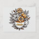 Café con flores marrones y blancas con las palabras: "Felicidad."