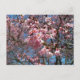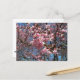Postal Flores de cerezo y de primavera rosada de abeja