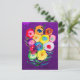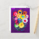 Arte abstracto de color de agua, arte fino. Árbol floral de flores de color arcoiris. Diseño divertido. Fondo morado.