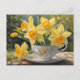 Postal Flores de Daffodil Amarillo en la Copa de Té Vinta