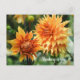 Postal Flores de dalia naranja y amarilla en los jardines