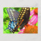 Postal Flores de Echinacea rosada de mariposa de cola neg