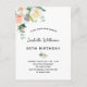 Una simple y elegante invitación a la fiesta de cumpleaños número 50 (o cualquier edad). Un fondo blanco moda. Decorado con flores de color acuático, flores de color blanco, rosa y oro rosa con vegetación. Personalice y agregue los detalles del fiesta de nombres. Texto negro. Atrás: diseño postal. Sugerencia: Si no desea que se vea como una postal, haga clic en personalizar, vaya a la parte posterior y quite el separador y el sello postal.