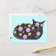 En las postales se imprimen cuadros de un gato negro tendido, adornados con flores y plantas que se enumeran como seguras para que los gatos coman, ingeryan. Las plantas incluyen daisy gerber, nasturcio, césped de cereales y catnip. Gracias por comprar CherylsArt en Zazzle.