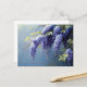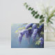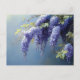 Hermoso primer plano de las vibrantes glicinias púrpuras que caen con gracia sobre un suave fondo azul pastel, mostrando una tranquila y serena impresión de la vívida belleza de la naturaleza durante la primavera.