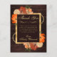Gorge Rustic Watercolor quemado naranja otoño flores otoño diseño floral sobre un fondo de madera marrón con borde de Relieve metalizado dorado
