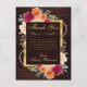 Gorgoous Rustic Watercolor quemado naranja y otoño rojo flores otoño diseño floral sobre un fondo de madera marrón con borde de Relieve metalizado dorado