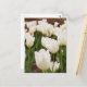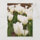 Las flores de tulipán blanco contra el follaje verde es un espectáculo impresionante y estimulante. Cuidadosamente plantado todos esos meses atrás ahora espléndido en su belleza y aplomo. Blanco puro y muy hermoso. Muy bonito para cualquiera que ame las flores blancas y especialmente los tulipanes blancos.
