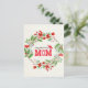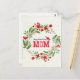 Escritura inspiradora La postal del Día de la Madre representa una corona floral acuarela con flores rojas y rosas, vegetación y un bonito pájaro rojo. La parte trasera de la tarjeta contiene una parte de Versos de la Biblia Números 6:24,26, "El SEÑOR te bendice y te guarda... y te da paz".