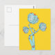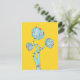 Postal de flores mecánicas con un divertido ilustracion vectorial extraño de flores azules que se parece a lotos con pétalos hechos de placas de circuitos electrónicos sobre fondo amarillo personalizable. Este diseño relacionado con la tecnología es genial para un chica geek.