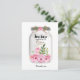 Una tarjeta postal de agradecimiento para un maestro que presenta un tarro de mason con flores rosadas con un lazo de arpillera en la tapa. Dice "Los maestros nos inspiran a florecer" con la palabra florecer en un diseño de purpurina dorada. Tenga en cuenta que no hay purpurina real en este producto.