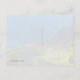 Postal Aloha con paisaje hawaiano, piñas y flores de plumería rosa. También conocida como frangipani, las hermosas flores rosadas con centros naranjas decoran el fondo de la postal donde dos piñas completan el diseño. La imagen de fondo es una montaña, o un volcán con agua azul más allá. El texto "Aloha" está anglonizado y es una plantilla para cambiar o borrar como quieras. La parte posterior está en blanco con un fondo de patrón de piña.