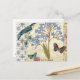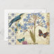 © Alain Pelletier / Wild Apple. Este collage presenta un ave, tres mariposas y un ramo de flores. En la imagen también se puede ver un sello así como algunos textos.