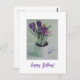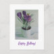 Esta preciosa tarjeta de cumpleaños de arte fue creada usando una foto de la pintura original al óleo "Crocuses in a white cup" de Pola.B.Alex, artista islandesa radicada en Edimburgo. Petróleo a bordo. © Pola.B.Alex Art.