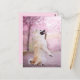 Una preciosa foto de un Buhund noruego en un parque arbolado de cerezos. Una postal para cualquiera que ame Japón, flores de cerezo o perros.