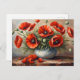 Postal Flores rojas de amapola en jarrón azul
