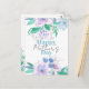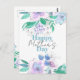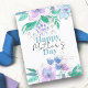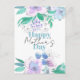 Esta postal del Día de la Madre es una hermosa expresión de amor y aprecio. El diseño es delicado y femenino, con un fondo blanco que sirve de lienzo para los ilustraciones vibrantes. La postal está decorada con flores de diseño meticuloso en tonos suaves de rosa, azul y violeta. El intrincado arte de la línea y el sutil sombra añaden profundidad a las flores, haciéndolas parecer casi algo vivas. Las hojas verdes se intercalan entre las flores, lo que aporta un agradable contraste con la paleta de colores. En el centro de la tarjeta, las palabras "Feliz Día de la Madre" están inscritas en un elegante guión cursivo. La colocación del texto en medio de los diseños florales llama la atención sobre el mensaje más sincero.