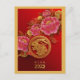 Diseño rojo y dorado con grandes flores rosadas para ayudar a celebrar el Año Nuevo Lunar!