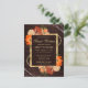 Esta cálida y elegante invitación de cumpleaños presenta un rico fondo de madera rústica adornado con vibrantes flores de otoño en tonos de naranja quemada, melocotón, crema y rojo suave. Luces suaves de cuerda cuelgan en la parte superior, agregando un ambiente acogedor y brillante que realza maravillosamente la paleta de otoño. Un marco dorado refinado destaca los detalles de su evento, dando al diseño un acabado pulido y sofisticado. Perfecto para cumpleaños de otoño, lugares de granero, celebraciones al aire libre o cualquiera que ame la papelería de temporada rústica con un toque de brillo. Personalice el nombre, la fecha y el lugar para crear un recuerdo bellamente personalizado.