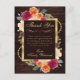 Esta elegante tarjeta de agradecimiento cálida presenta un rico fondo de madera rústica enmarcado con vibrantes flores de otoño en tonos de naranja quemada, rojo intenso, melocotón y crema. Un refinado marco dorado resalta su mensaje maravillosamente, creando una forma sincera y elegante de agradecer a los invitados por celebrar con usted. Perfecta para cumpleaños de otoño, lugares de granero, reuniones al aire libre o para cualquier persona que ame la estética acogedora del otoño con un acabado pulido y sofisticado. Personalice el nombre y el mensaje para crear un recuerdo significativo que sus invitados apreciarán.