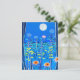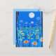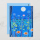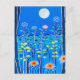 Postal en una escena de fantasía de flores silvestres en el bosque, bajo la luna llena, en azul y turquesa por la noche
