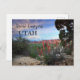 Esta hermosa postal de Utah muestra una impresionante foto de flores silvestres de pénstemon rojo en el Parque Estatal del Cañón de Nieve, Utah. Fotografía creada por la galardonada fotógrafa Maria Jeffs.