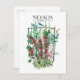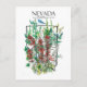 Postal con flores silvestres de Nevada decorado con arpillera de color sagebrush e indio en forma de estado dibujado con tinta y pintado con acuarela. ¡Excelente manera divertida de saludar desde "El estado de Sagebrush" o de usar para los intercambios de postales!