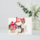 Un retrato de dos chihuahuas, algunas flores y un signo de amor
