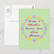 Esta increíble tarjeta postal del Día de la Madre presenta una selección de hermosas flores, incluyendo Cosmos bicolores rosados claros y brillantes, margaritas rosadas, crisantemos morados claros y nomeolvides azules y mariposas amarillas formando un círculo alrededor de una bonita escritura en morado y rosa que dice "Solo una Madre sabe cómo crece el Amor". Un diseño encantador para celebrar a una Madre