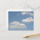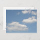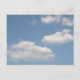 Esta postal muestra una fotografía de unas nubes de cúmulo blancas onduladas flotando tranquilamente sobre un hermoso cielo azul.