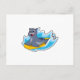 Postal Foca como surfista con tabla de surf