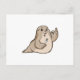 Postal Foca con pescado y tenedor