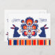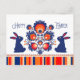 Postal feliz de Pascua con composición folclórica y un par de conejillos azules con orejas rojas. Diseño inspirado en el arte popular polaco de la región de Lowicz. El texto de la página de atrás es totalmente personalizable. Todo lo que necesitas es firmar en la parte inferior y la única postal está lista para hacer sonreír a alguien.