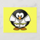 Postal Fondo amarillo personalizado Judo Pingüino